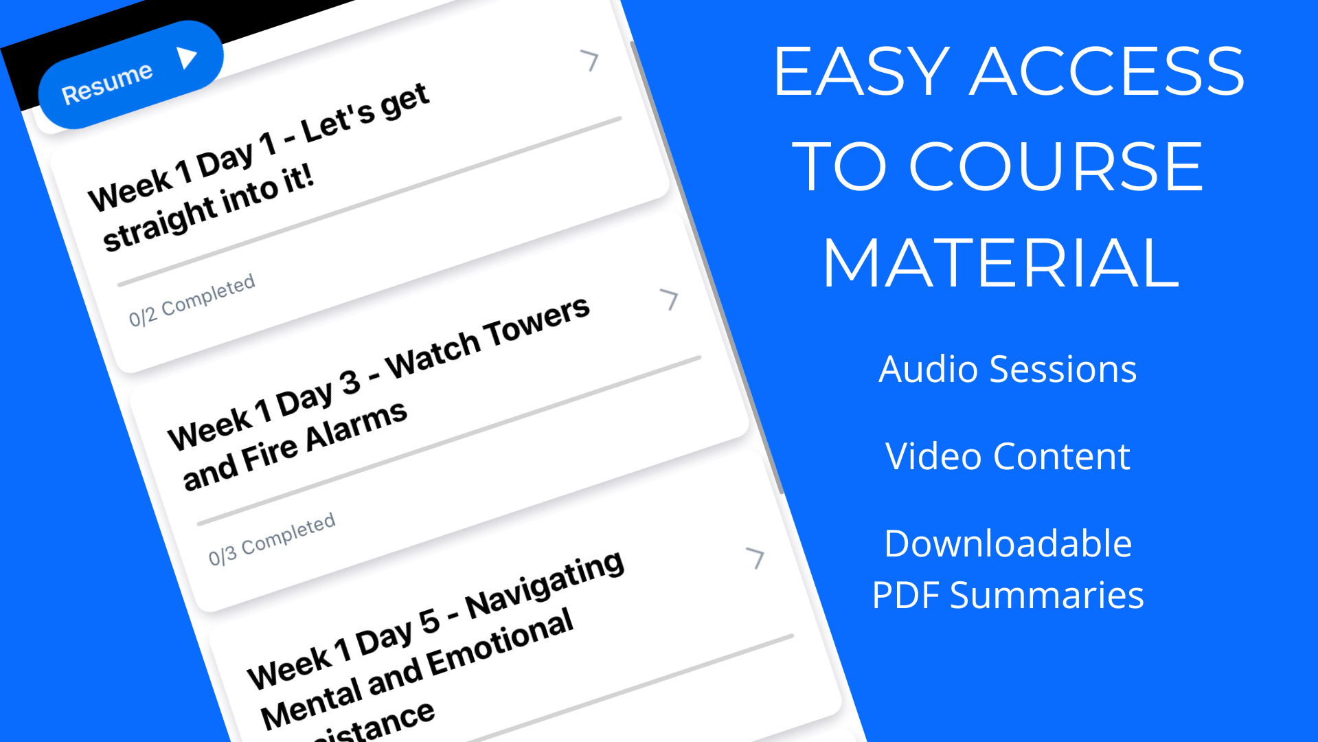 Course content is delivered via a streamlined and easy to access app. No need to bookmark pages or open your web browser.
